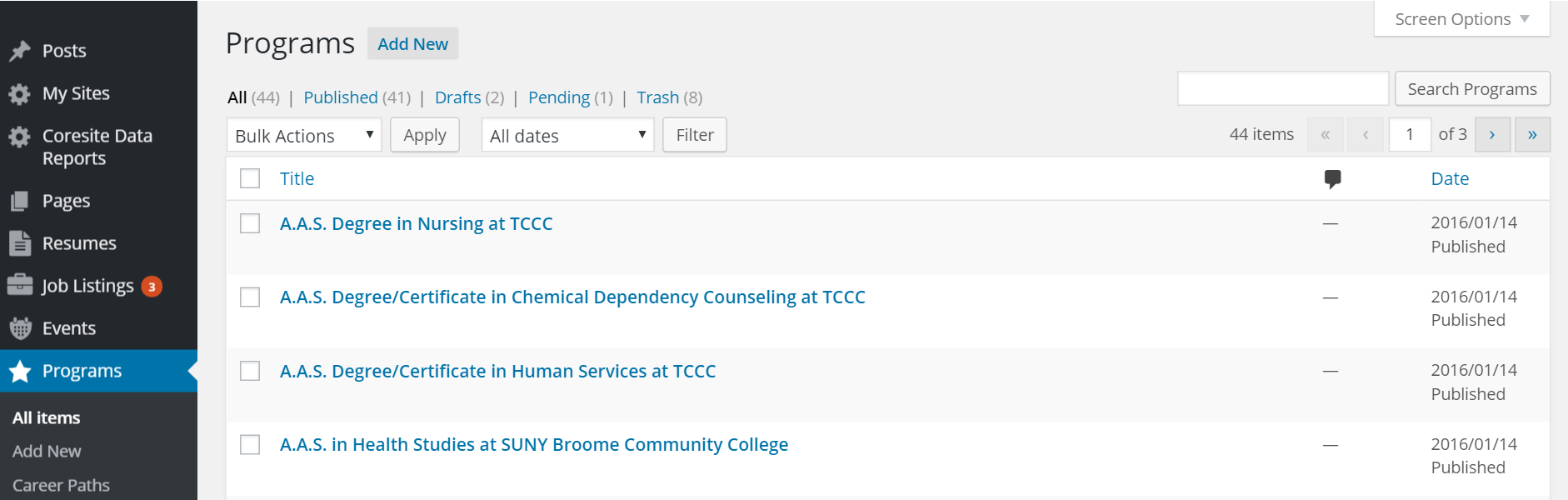 4. Click on 'Programs' on the left side bar. to add a new program, click 'Add New'.
