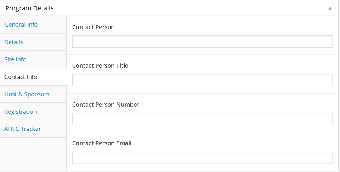 - Add the name of a person responsible for inquiries into the program in the 'Contact Person' text box.